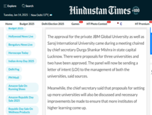 Its a matter of pride for the JBM group of institutions after making a humble initiation in 1974 has created a niche for itself in the last 50 years with excellence in education transmitting a legacy of upholding virtues. With 10,000+ students enrolled and 450+ teaching community in 7 Institutions in Delhi/ NCR with more than 50 acres of campus area and 25,000+ network of alumnis, the group acknowledges the obligation to cultivate new generations with a difference.